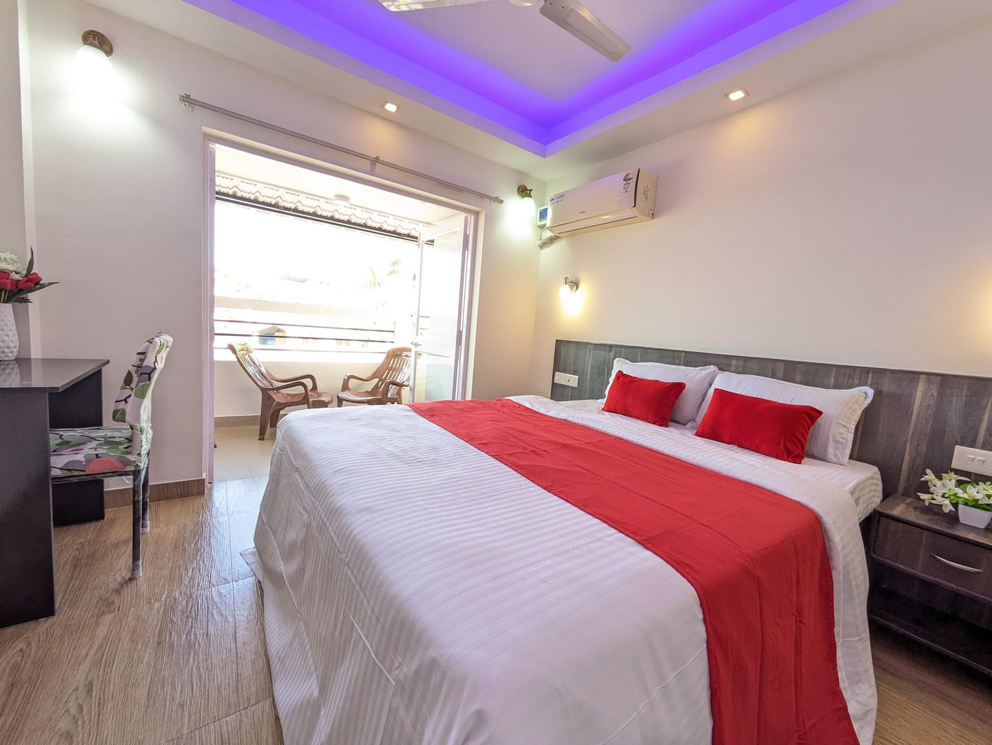 Just a short 5 mins walk from the famous Colva Beach — perfect for morning walks, sunsets, and local eateries.