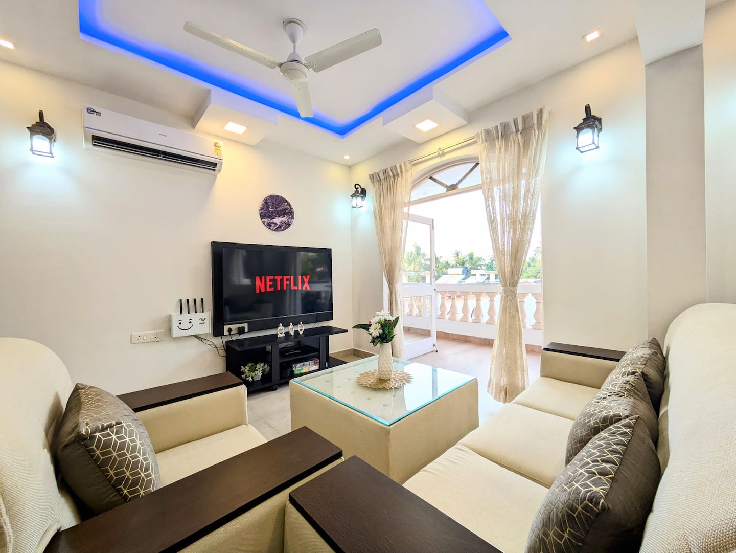 Enjoy a calm, comfortable, and homely atmosphere designed to make your stay effortless and relaxing. Each bedroom comes with its own private balcony, giving you space to enjoy the cool coastal breeze and quiet moments outdoors. With bright interiors, a spacious living room perfect for gathering, and thoughtful amenities throughout, this 4BHK apartment is ideal for families and groups looking for comfort, space, and a warm place to unwind in Colva.